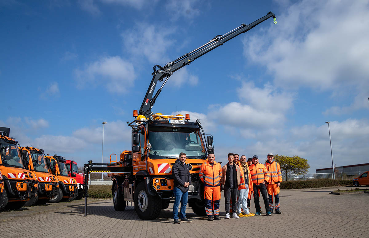 Ein neuer, vielseitig ausgestatteter Unimog wurde an die Landesstraßenbaubehörde Sachsen-Anhalt, Straßenmeisterei Diemitz übergeben. Der Unimog U 527 ist auf Ganzjahreseinsätze ausgelegt. Ein zentrales Ausstattungsmerkmal ist der HIAB X-HIDUO 092 Kran, der mit 8,8 tm Hubkapazität, einer hydraulischen Reichweite von bis zu 9,20 Metern und Zweifach-Abstützung ideal für verschiedene Ladearbeiten geeignet ist. Dank seines modularen Aufbaus kann der Unimog darüber hinaus mit einem Kanalspülgerät und in der kalten Jahreszeit mit kompletter Winterdiensttechnik eingesetzt werden.